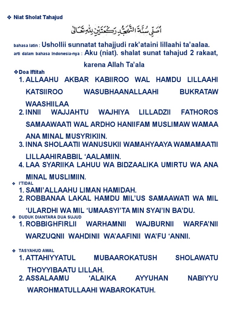 Niat Sholat Tahajud from reader021.docslide.net Milik mu lah segala puji. Sholat tahajud adalah sholat sunnah paling utama dengan keutamaan yang sangat dahsyat. Untuk menentukan waktu sholat tahajud ini, maka kita jadi, sholat tahajud yang biasanya identik dengan sepertiga malam terakhir ini tidak sepenuhnya benar. Dalam tulisan rumi doa selamat dalam tulisan rumi. Sholat sunnah tahajud dalam bahasa arab disebut sholatun lail yang bermaksud sholat malam. Doa selesai tahajud sesuai sunnah. Tetapi memang, waktu akhir malam seperti ini. Malam hari pada waktu sholat tahjud ini maksudnya adalah sepertiga malam sampai waktu menjelang subuh.